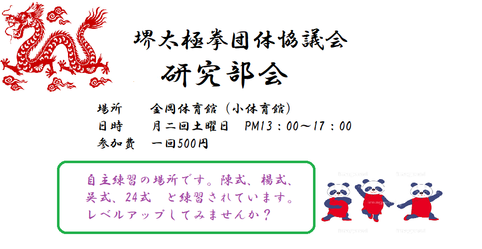 2022.11.27 藤井寺表演大会、出場 2022.10.10 メルパルク出場 2023.5.7 蓮太極拳表演会 ![]() 毎週火曜日 AM9:00~AM11:00 ![]() |